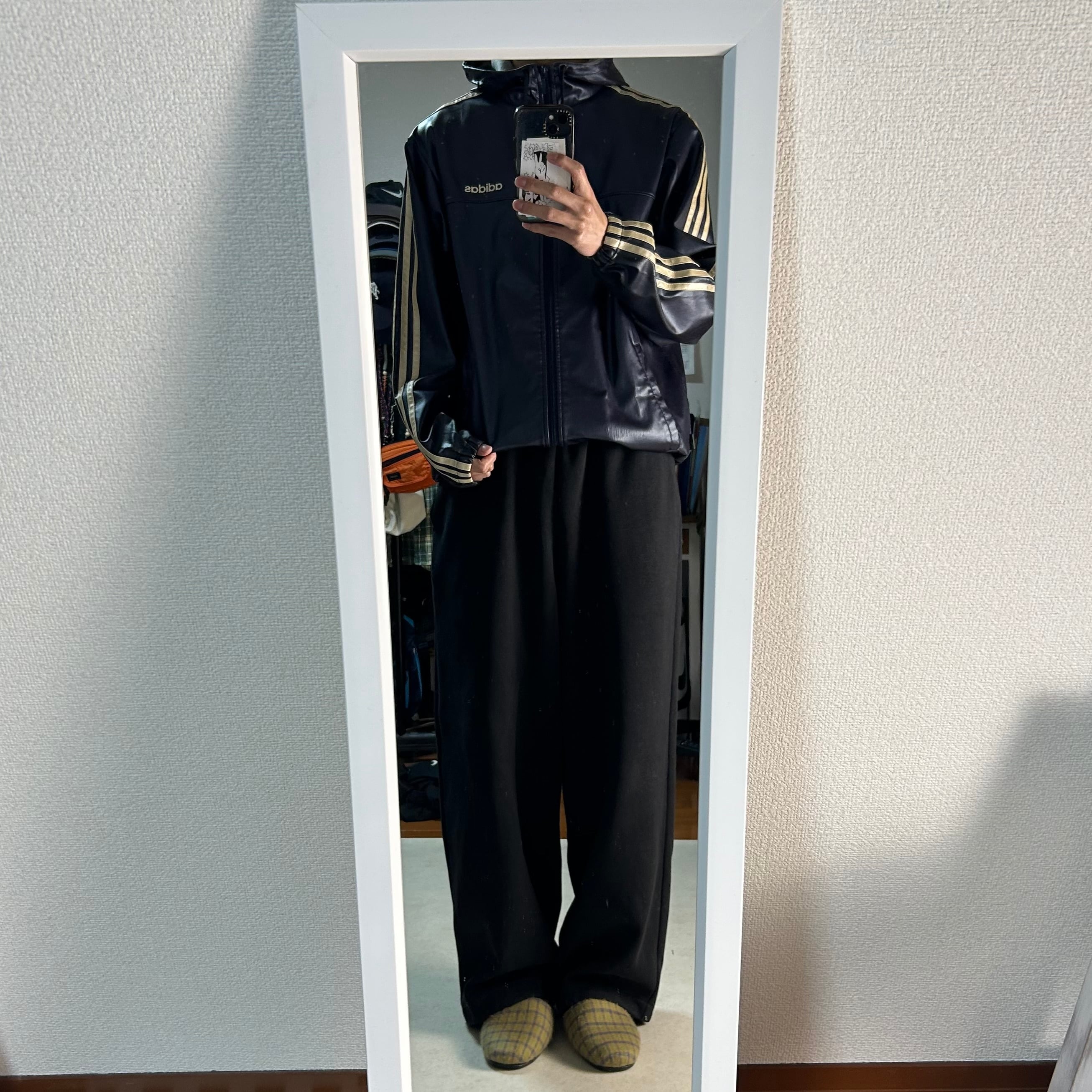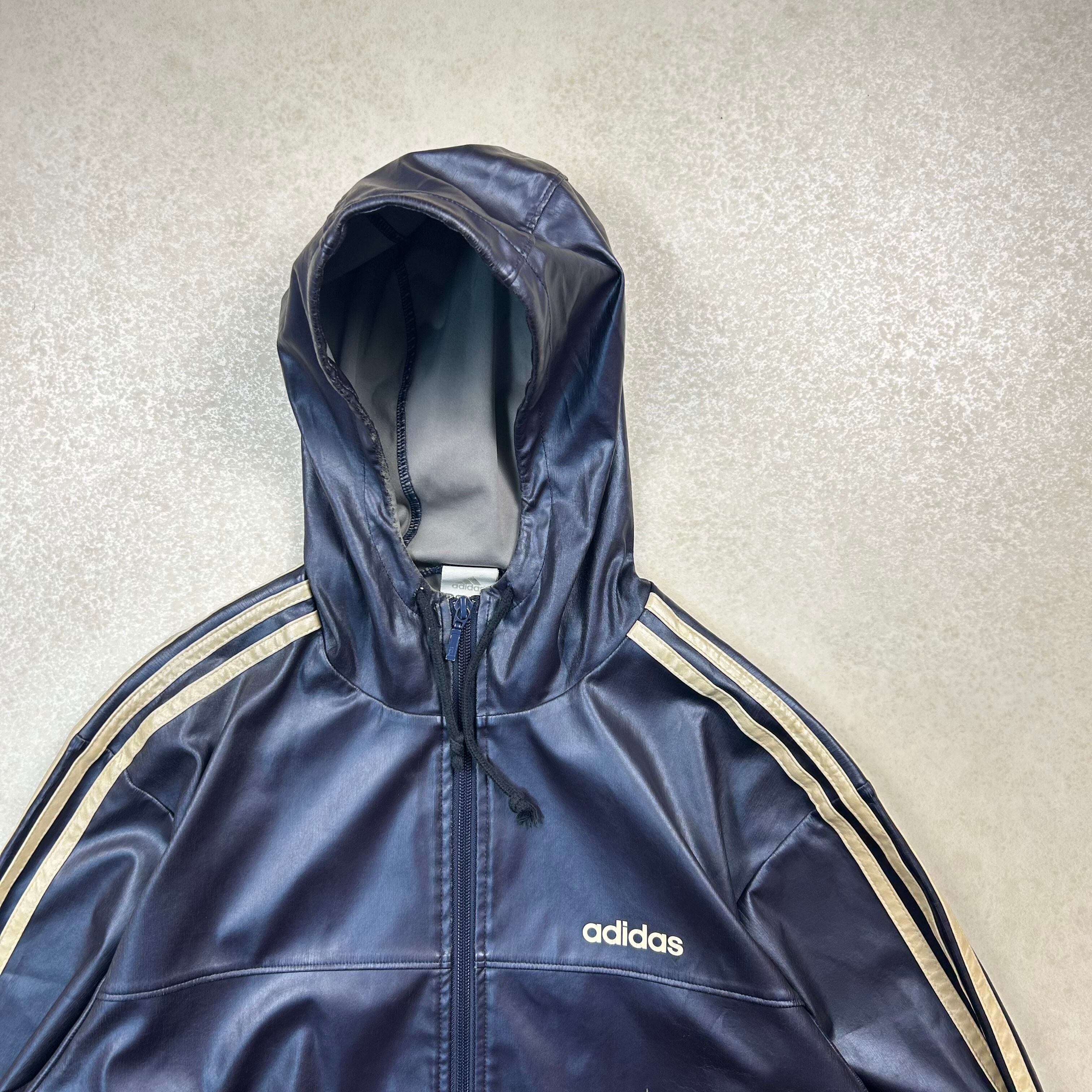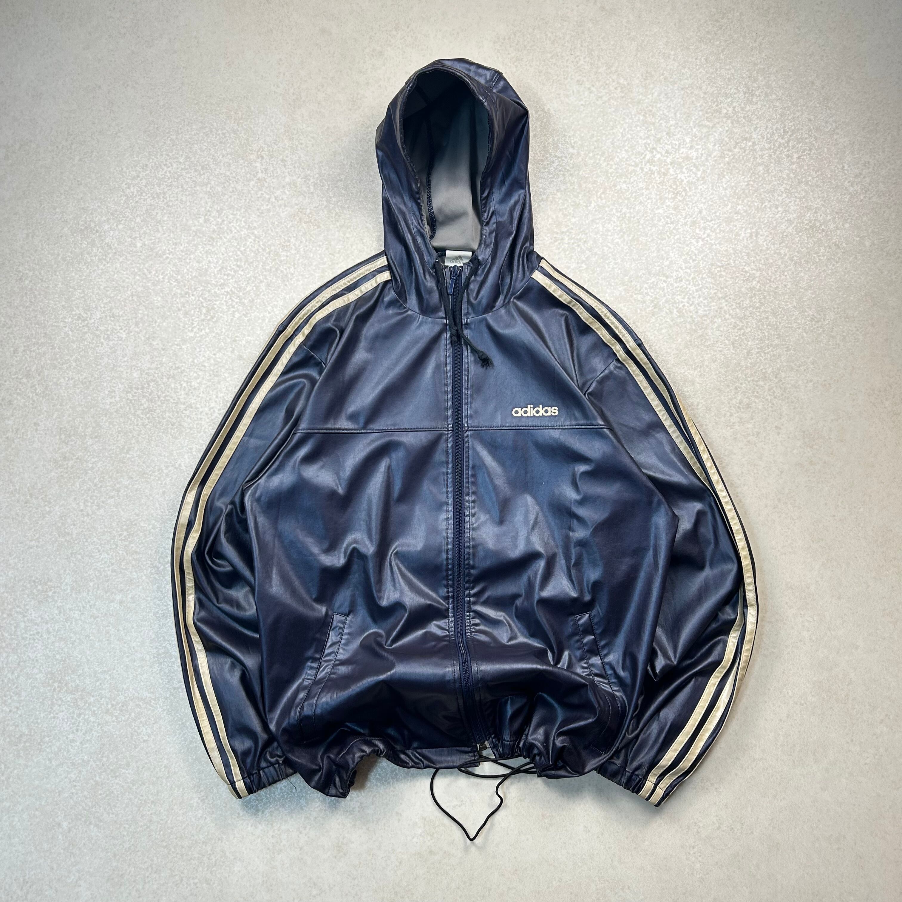 【着画あり】00s adidas トラックジャケット フェイクレザー ドローコード Mサイズ